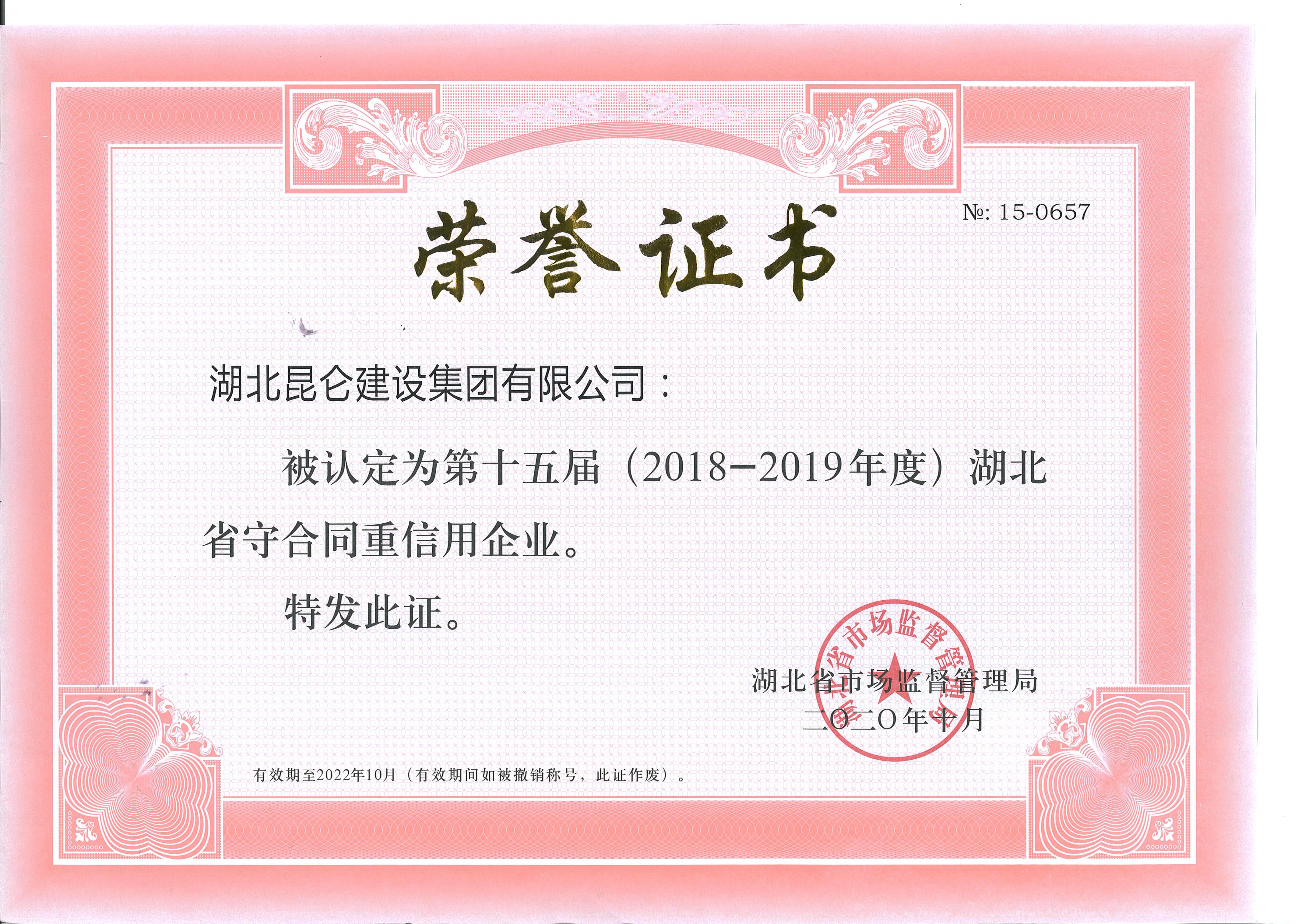 • 2018~2019年湖北省守合同重信用企業