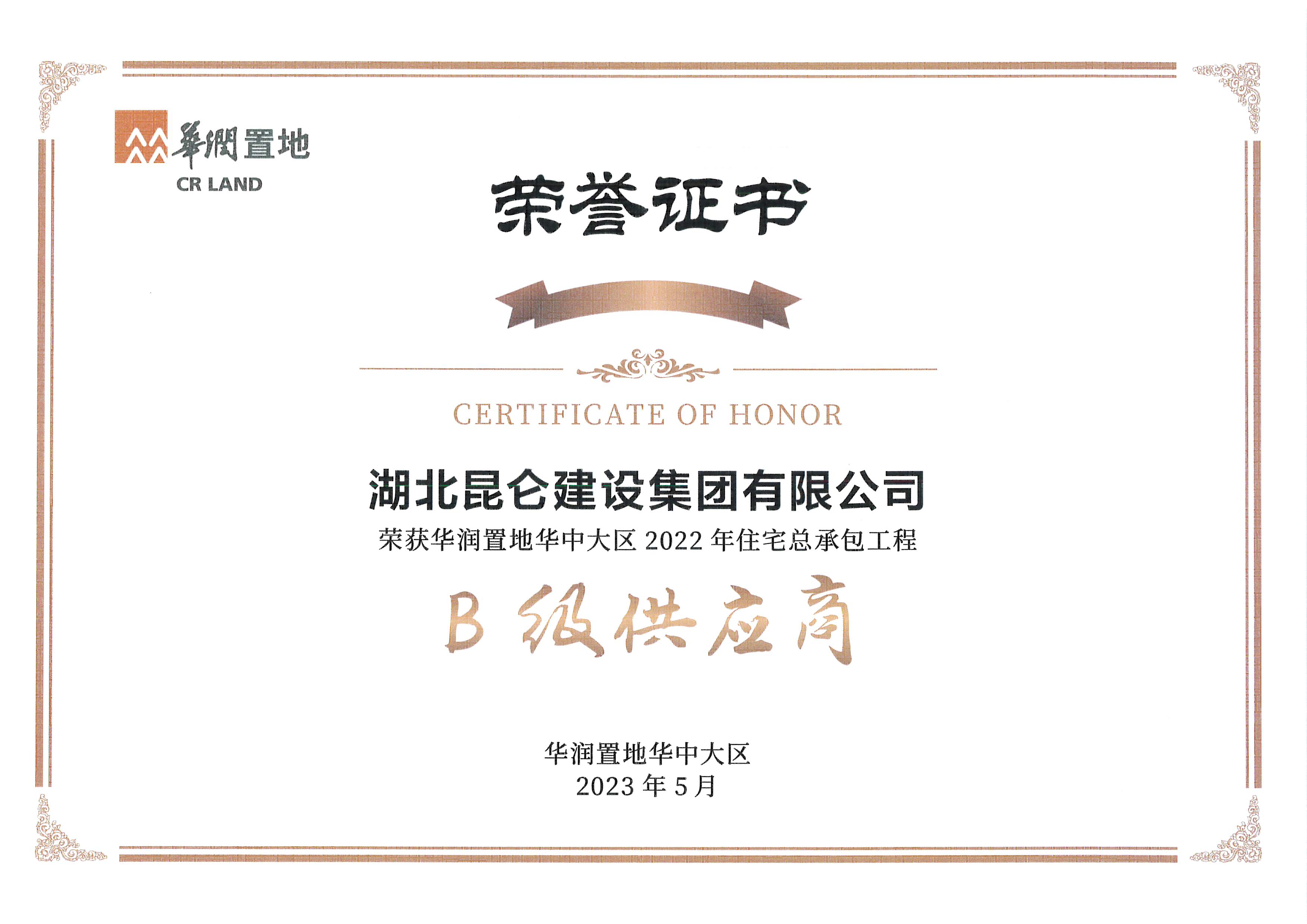 • 2023年5月榮獲華潤置地供應商“攻艱克難獎”